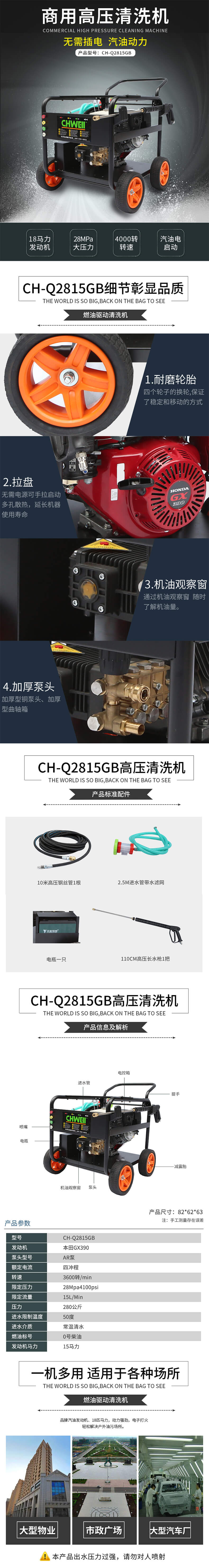 长淮CH-Q2815GB汽油高压清洗机15马力本田发动机 280公斤压力