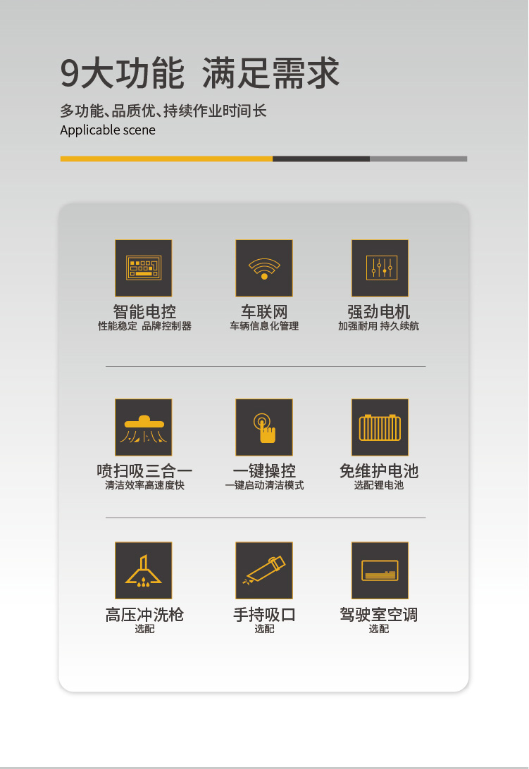 l 整车采用轻量化设计,可选锂电或免维护动力。大功率可调节交流风机,能根据路况调整风机的转速。