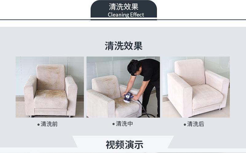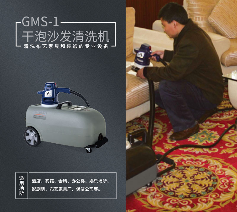 清洗布艺家具和装饰的专业设备。适用于酒店、酒楼、会所、办公楼、娱乐场所、影剧院、布艺家具厂、保洁公司。 高美沙发清洗机配用清洁剂: 干泡地毯水、地毯除渍剂。