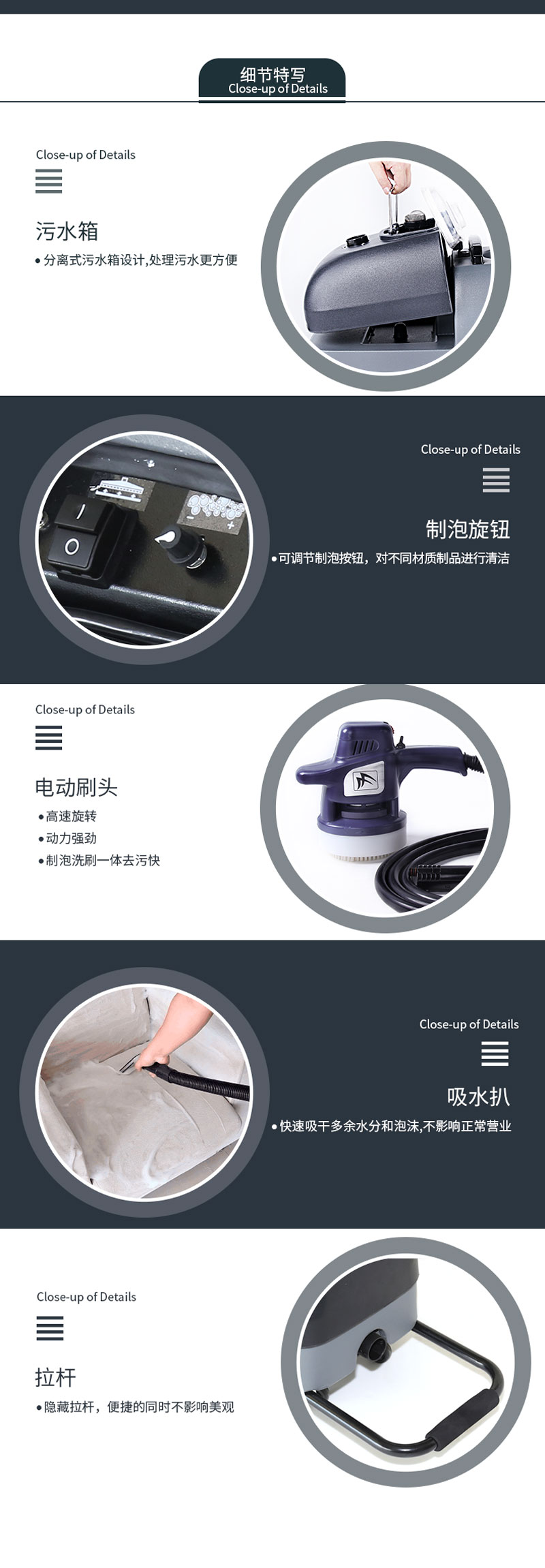 3、泡沫含水量可调,严重污渍也能快速清洗干净。