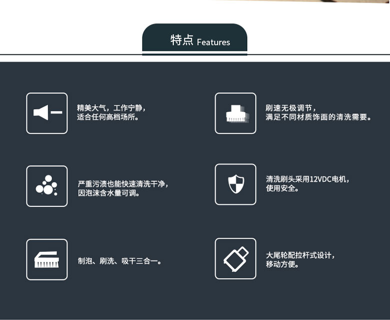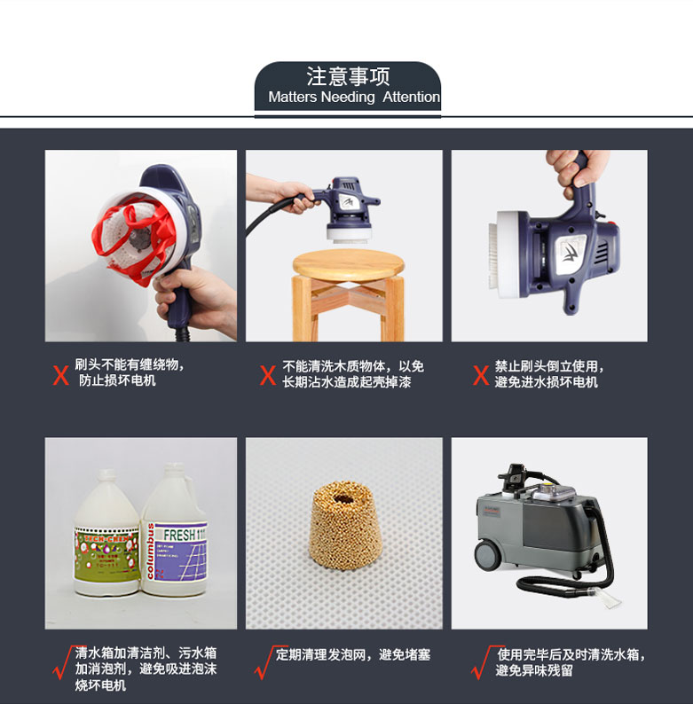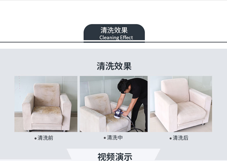 泡沫制造,电动刷洗、真空抽吸三合一,是清洗各种布艺家具和装饰的专业设备。适用宾馆酒店等场所。