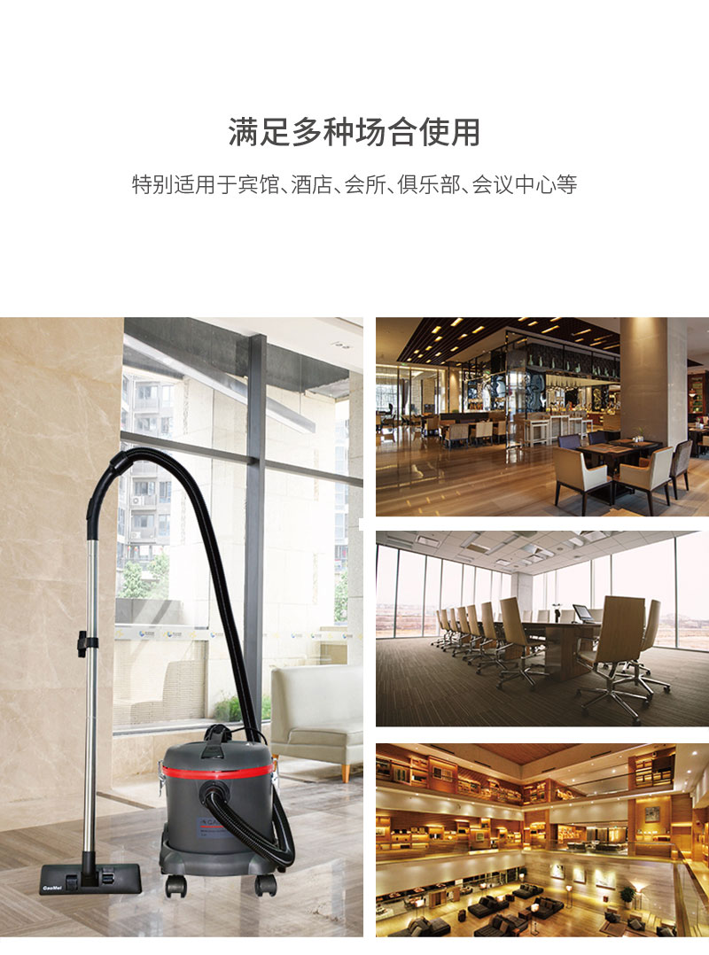 吸力强劲,超低静音,采用螺旋风道降噪,避免消音棉包裹真空马达的消音方式,易造成排风不畅,影响吸力;积热缩短真空马达的寿命等问题,用于硬地面、各类地毯的日常吸尘护理。特别适用于宾馆、酒店、会所、俱乐部、办公楼、会议中心、餐饮等铺设地毯的场所。