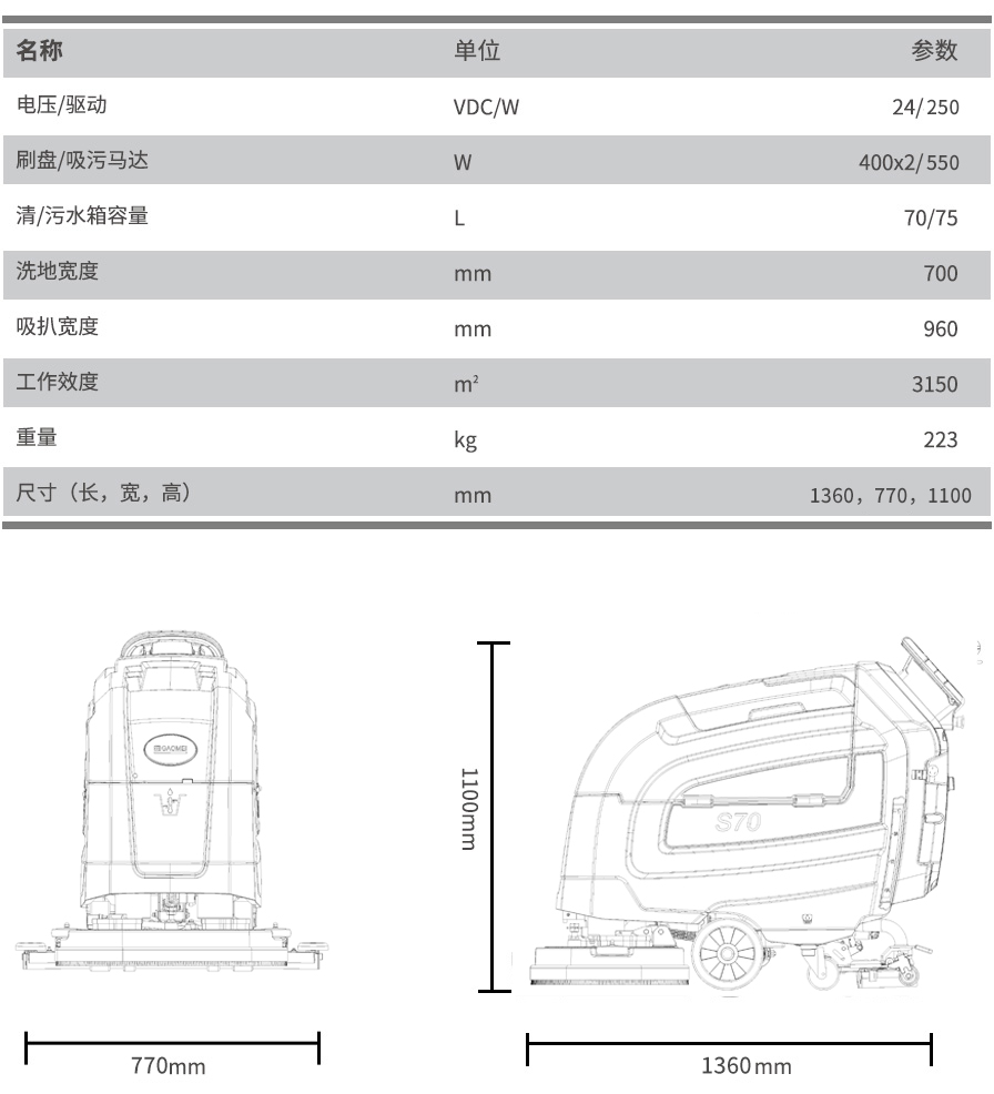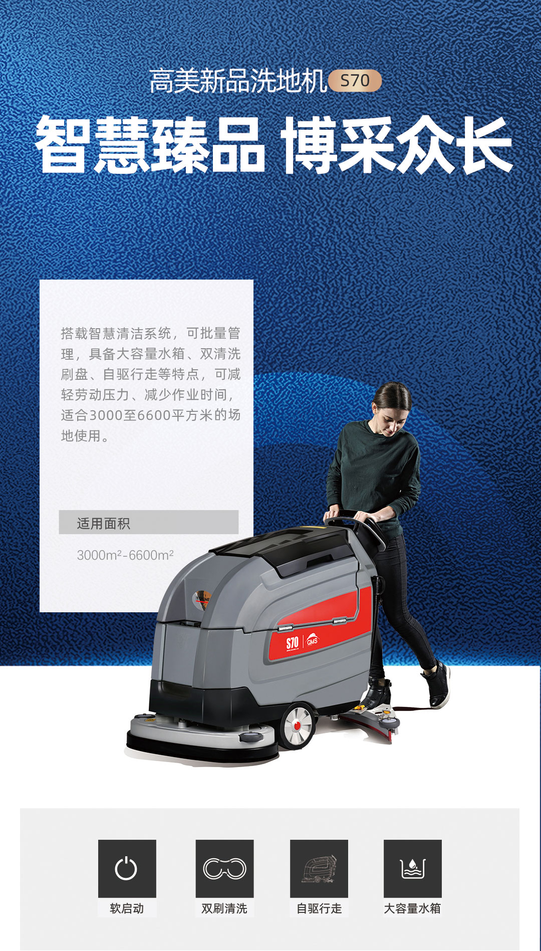 S70高美智慧型洗地机价格|天津手推式双刷洗地机价格品牌