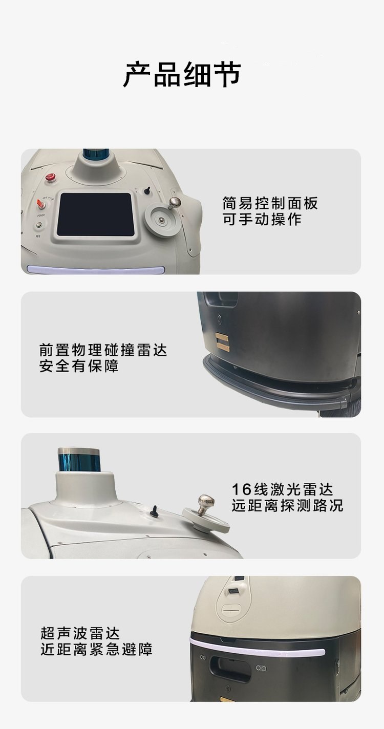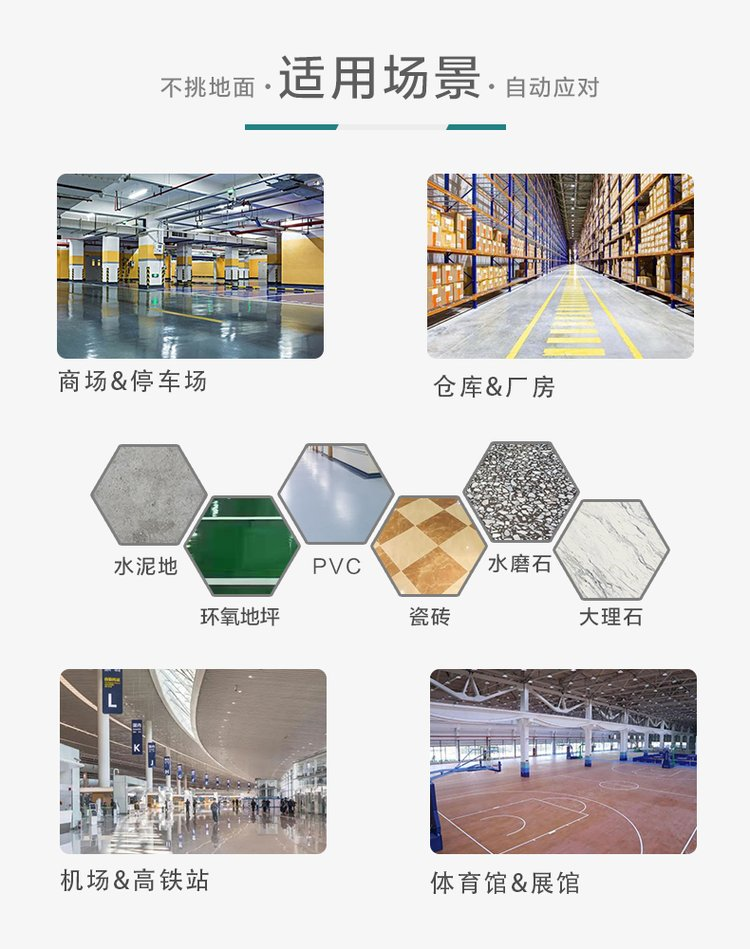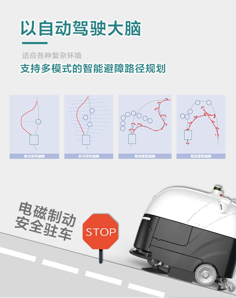无人驾驶洗地机SC80,是一台智能、安全、专业的无人驾驶洗地车,同时具备无人驾驶作业和手动驾驶作业功能。SC80具备环境感知、自动路径规划、自主避障、自动充电、自动加/排水、自动添加清洁剂、自动清洁污水箱等功能,能帮助您从重复、枯燥、繁重的洗地工作中解放出来,给您提供完整的一站式硬地面清洁方案,有效节省人力,降低清洁人员工作强度,降低运营管理支出。应用场景:适用于室内停车场、工业厂房、物流仓库、购物中心、高铁站大厅、机场大厅、体育馆、展馆、楼宇前广场等室内外中大场景的各类硬地面的表面油污清洁。硬地面包括:环氧地坪、水泥、大理石、水磨石、毛石、瓷砖、金刚砂、PVC地面等。