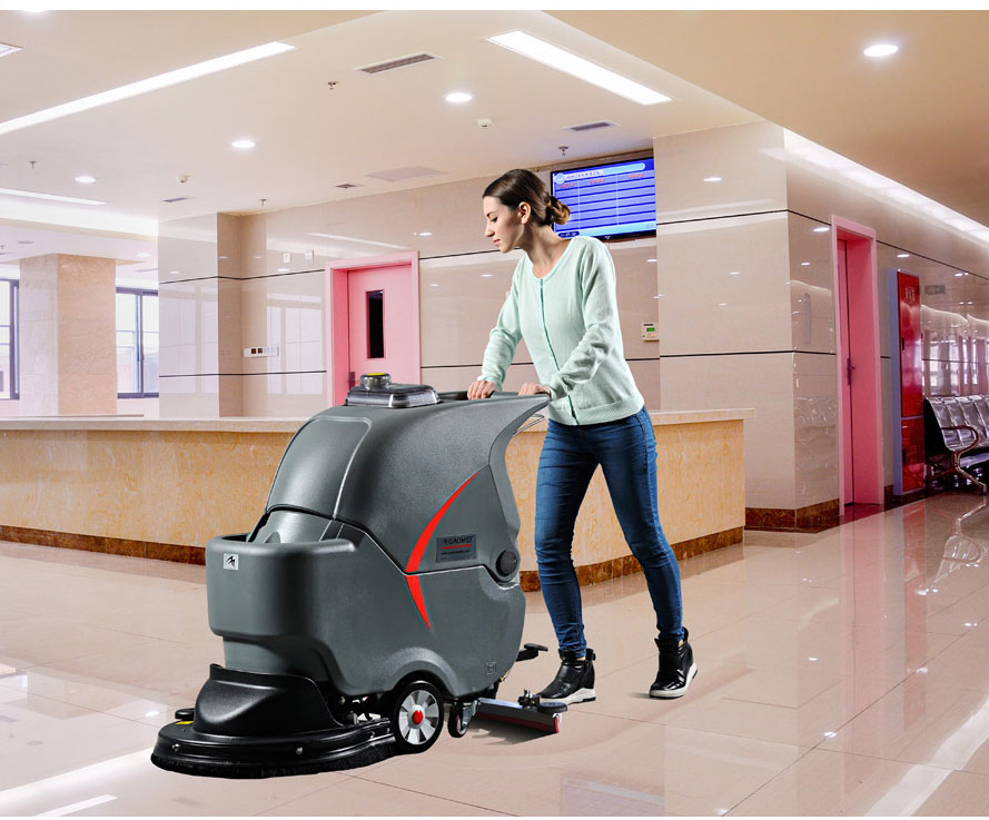 首先,医院内部,例如走廊,大堂,病房,休息区等等,在人流量较大的医院,可以用我们高美品牌手推式洗地机,既方便又快捷。手推式洗地机,保洁阿姨以手握式控制洗地机的前进快慢速度以及左右前后的方向,更加小心的避开走动的人群。
